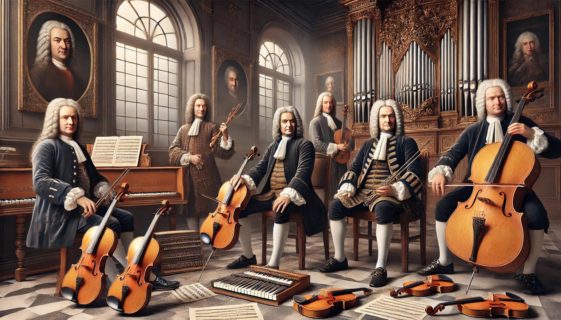 Nokre av dei mest kjende komponistane i barokkperioden inkluderer Claudio Monteverdi, som ofte blir sett på som pioneren bak operaen; Antonio Vivaldi, mest kjend for fiolinkonsertane sine, spesielt 'Dei fire årstider'; Johann Sebastian Bach, kanskje ein av dei mest kjende komponistane i historia, som skapte eit enormt korpus av musikk for kyrkje, orgel, kor, orkester og soloinstrument; og Georg Friedrich Händel, kjend for oratoria sine, spesielt 'Messias'.