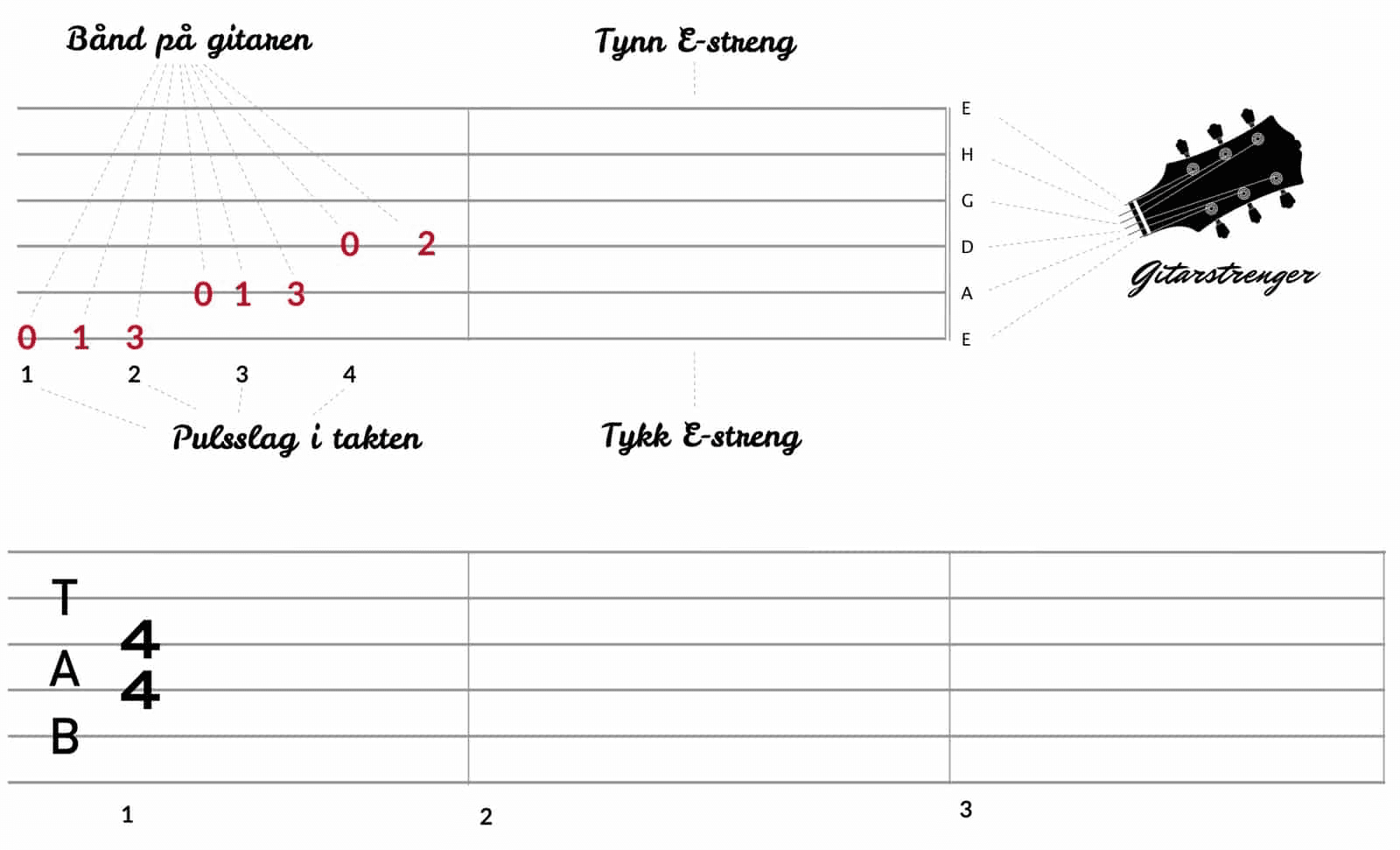 Ein tablatur er i hovudsak eit kart over gripebrettet til gitaren, der tala indikerer nøyaktig kvar på gripebrettet ein skal plassere fingrane. Når det vert brukt i eit læringsmiljø, kan det hjelpe studentar å byggje opp ein solid forståing for korleis melodiar er bygd opp og korleis ulike teknikkar blir brukt for å få fram ulike lydar. Det kan også bidra til å utvikle ein betre forståing av oppbygginga til gitaren og korleis ulike grep påverkar tonane som blir produsert.