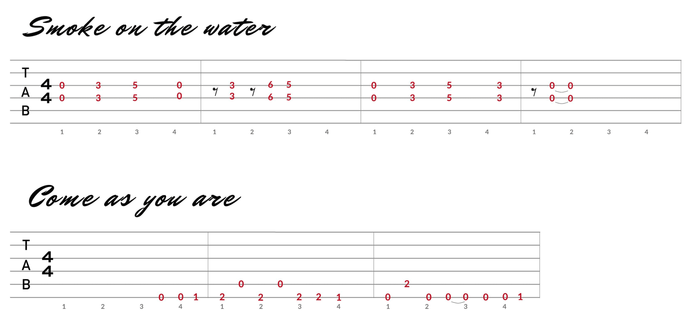 I eit gitartablatur er dei seks linjene eit direkte spegelbilete av gitarens seks strengar, med den øvste linja som representerer den tynnaste strengen. Tala på desse linjene indikerer på kva band fingrane skal plasserast. Til dømes vil eit "0" indikere at strengen skal spelast 'open' (utan å trykkje på nokon band), medan eit "3" vil indikere at tredje band skal trykkast ned.