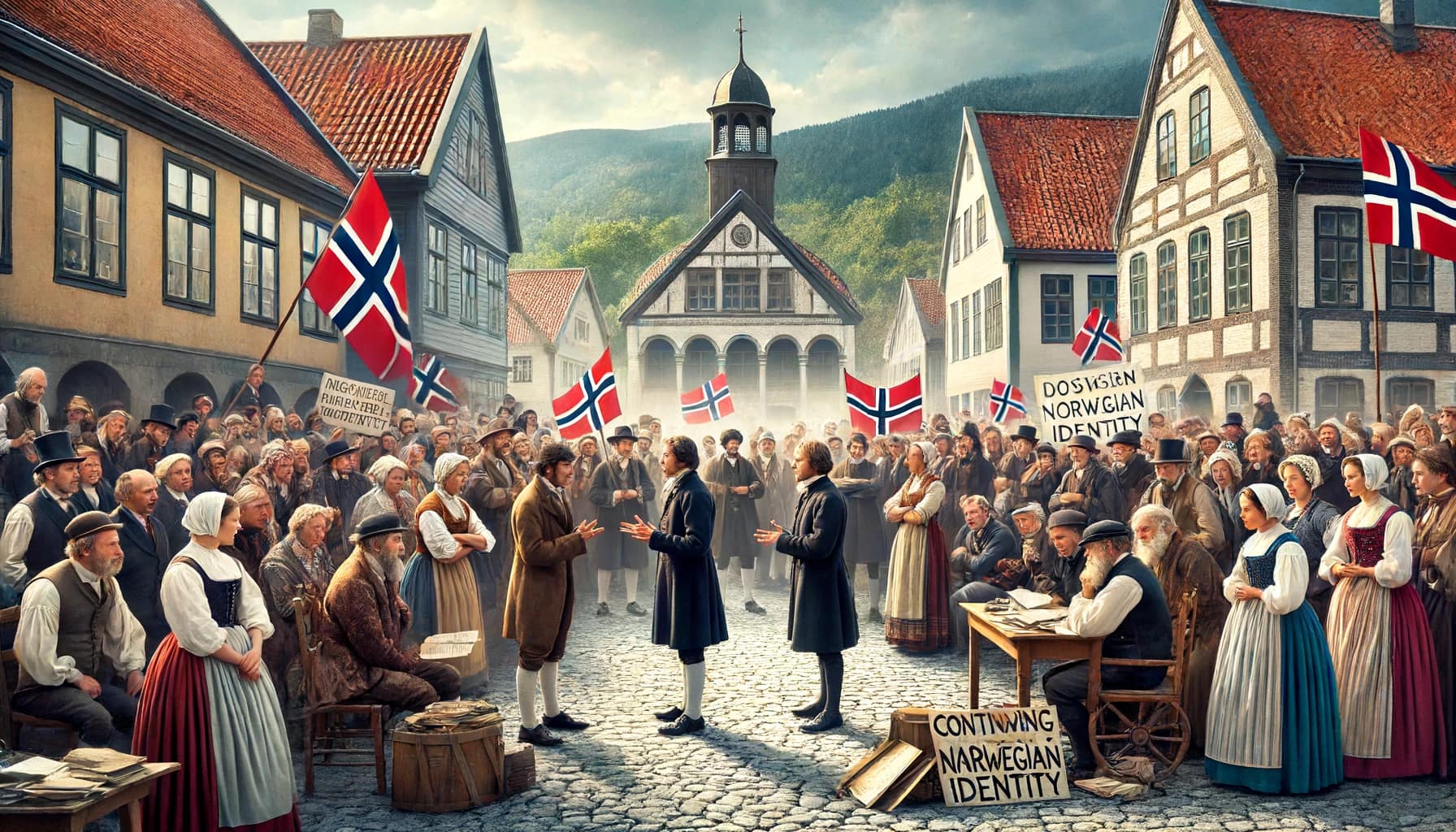 Det dukka opp fleire spørsmål: Korleis skulle Noreg som ein sjølvstendig nasjon finne identiteten sin? Skulle nordmenn halde fram med å skrive og snakke dansk? Desse spørsmåla delte folk i to grupperingar. På den eine sida var det dei som ville at Noreg skulle skape sin eigen identitet, og på den andre sida dei som ville at landet skulle byggje vidare på den dansk-norske kulturarva.