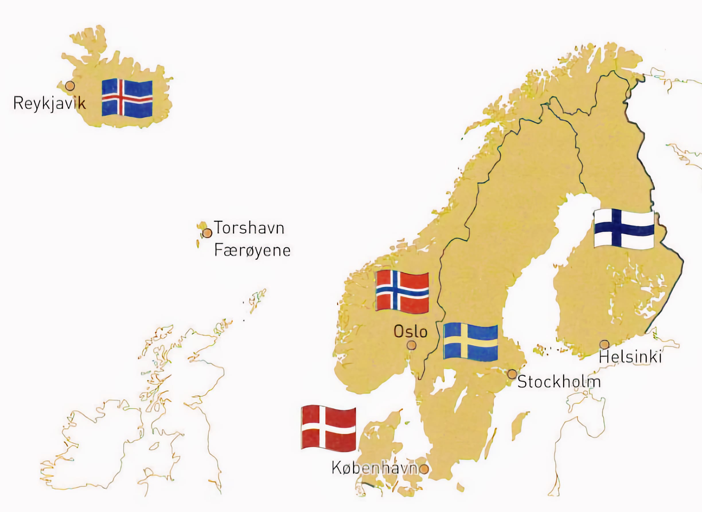 Dei skandinaviske språka har gjennom historia også blitt påverka av andre språk. Svensk har lånt mange ord frå fransk, spesielt på 1700-talet, då fransk kultur og språk hadde stor status i Europa. Ord som «trottoar» (fortau) og «möbel» (møbel) kjem frå fransk. Dansk har i nyare tid blitt sterkt påverka av engelsk, særleg gjennom ord som «computer», «weekend» og «job». Norsk har ein miks av påverknad frå fleire språk, blant anna tysk, dansk og engelsk. Dette viser korleis språka i Norden har vore opne for påverknad frå kulturar utanfor regionen.
