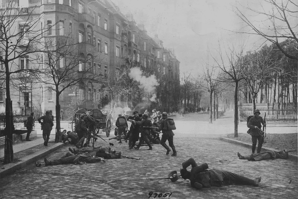 I Tyskland, som hadde tapt krigen, opplevde folk ekstrem fattigdom og naud. Landet blei hardt straffa økonomisk av dei allierte gjennom Versaillestraktaten. Tyskarane måtte gi frå seg territorium og koloniar, ikkje ruste opp militært, og betale store krigserstatningar. Dette var eit hardt slag for eit stolt Tyskland og skapte grobotn for ekstreme politiske rørsler.