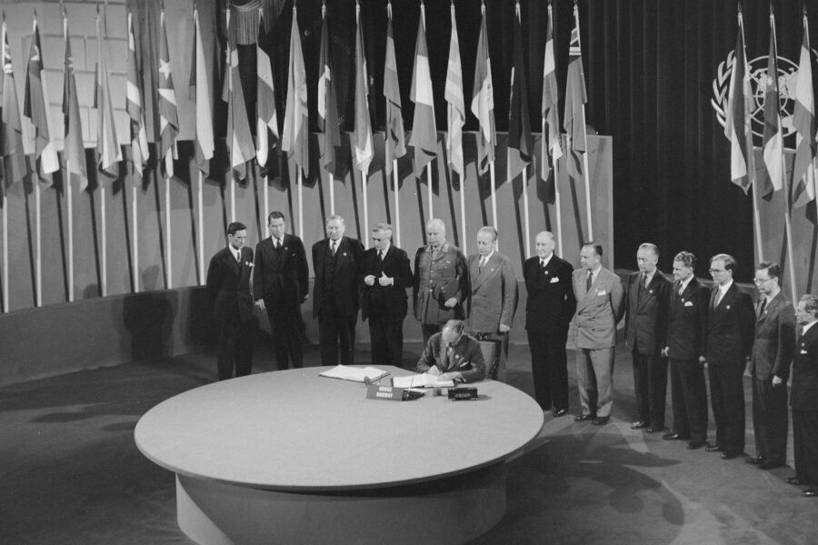 Opprettinga av "Dei foreina nasjonane" (FN) i 1945 var eit svar på behovet for ein sterkare internasjonal organisasjon som kunne fremje fred og forhindre nye verdskrigar. Folkeforbundet, som vart oppretta etter den første verdskrigen, hadde ikkje klart å stoppe utbrotet av den andre verdskrigen, så FN vart sett på som eit viktig steg for å sikre global stabilitet.