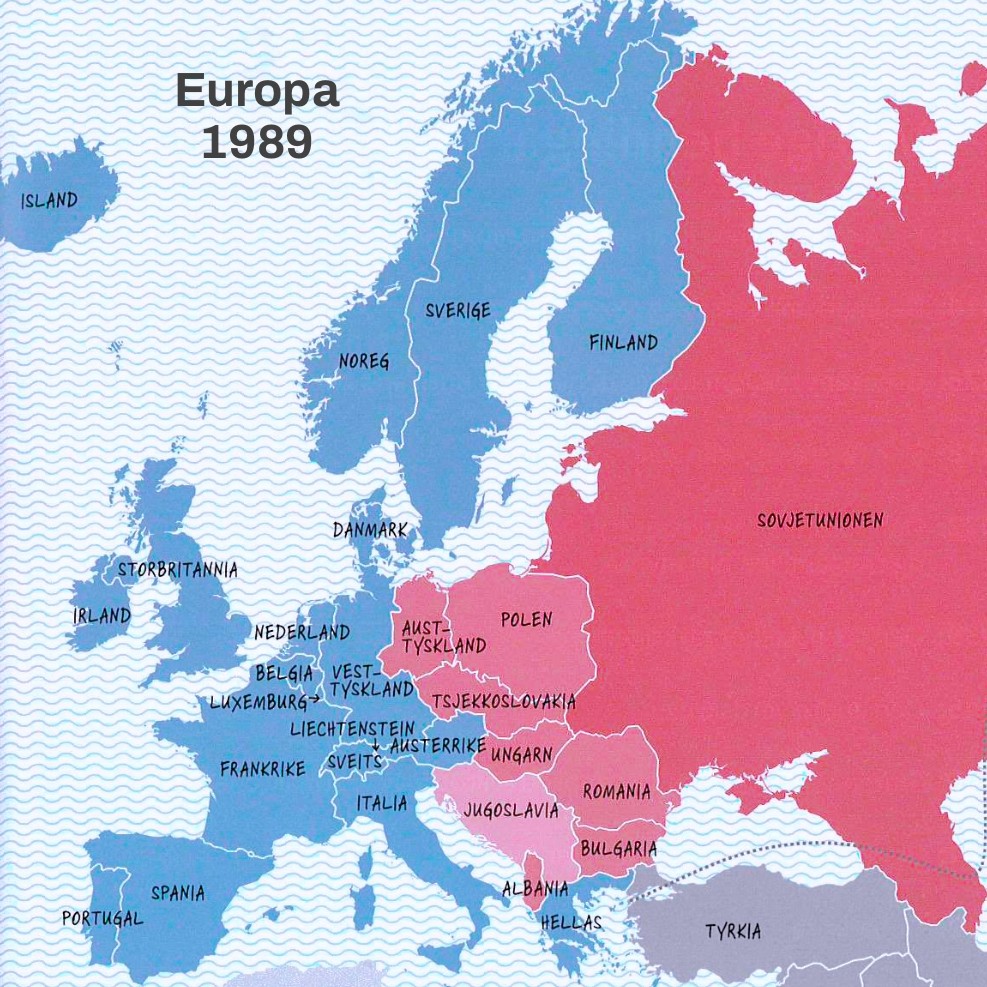 Så kom den kalde krigen, som starta i 1945 og ikkje slutta før i 1991. Dette var ikkje ein krig med skyting og bomber, men ein krig der austblokkland og vesten truga kvarandre og prøvde å vise kven som var sterkast. Under denne tida skjedde det mange skremmande hendingar, som då Tsjernobyl-ulykka skjedde i 1986. Men det var også tider for endring, som då Berlinmuren, som hadde delt byen i to, vart rive i 1989-1990, og Tyskland vart gjenforent.