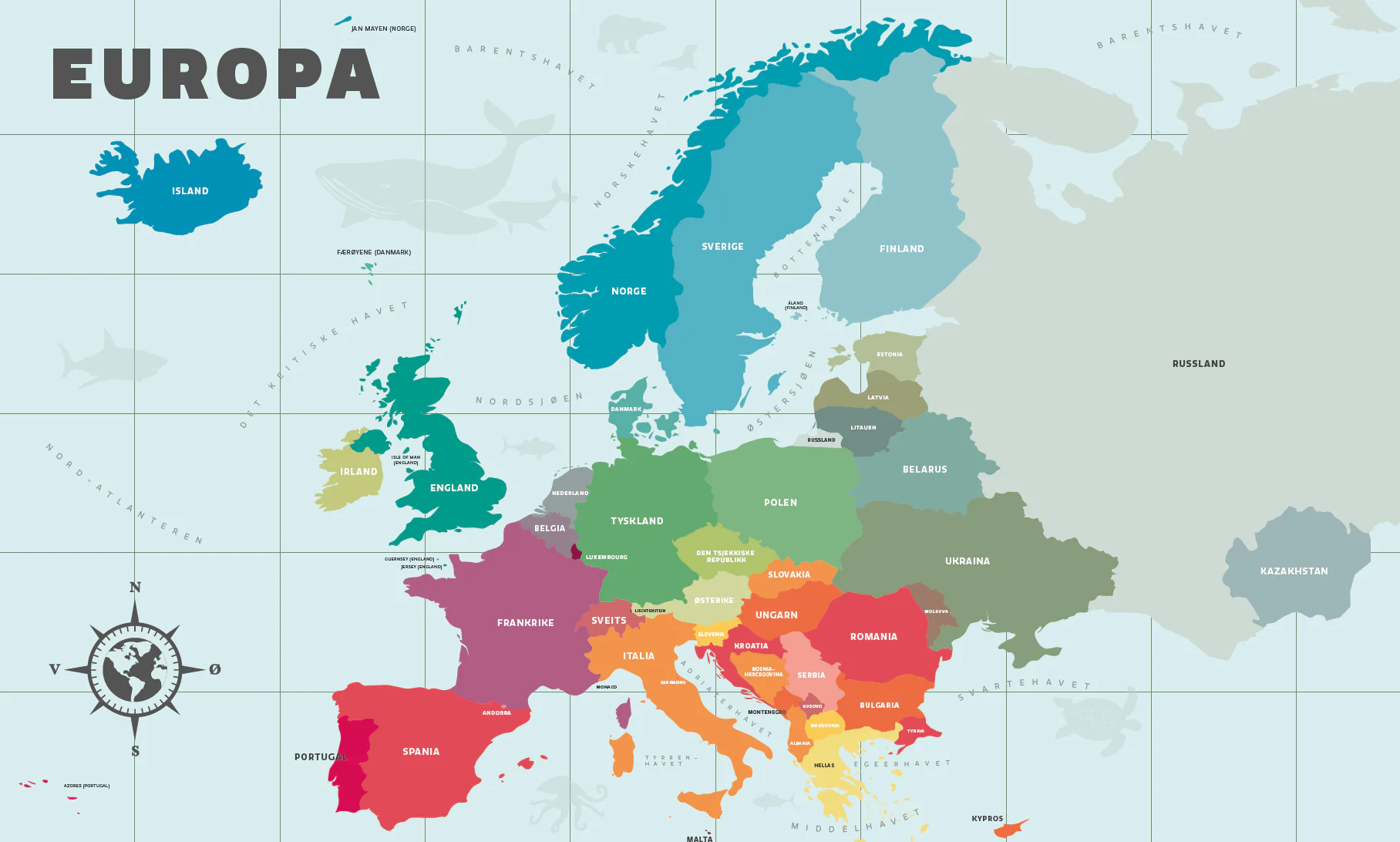 Europa består av 48 land, frå dei aller minste som Vatikanstaten i hjartet av Roma, til dei største som Russland, som strekkjer seg langt utover dei europeiske grensene. Desse landa er svært ulike når det kjem til storleik, levekår, styresett, historie og kultur. Det er denne variasjonen som gjer Europa til eit spennande kontinent å utforske.