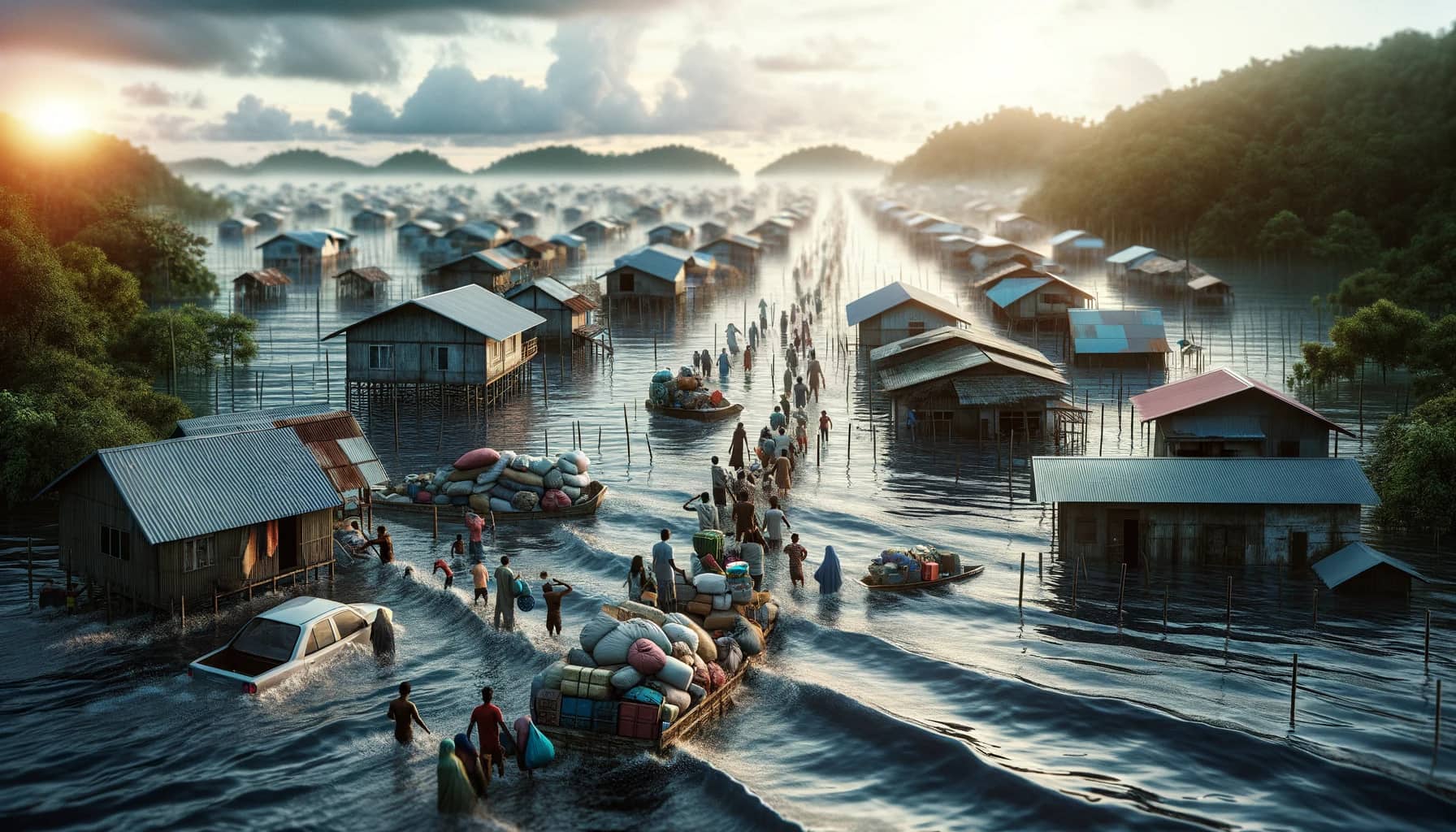 Eit anna stort problem som ser ut til å påverke kor mange som må flykte, er klimaendringane. Når klimaet endrar seg, kan det føre til naturkatastrofar og endringar i miljøet som gjer det vanskeleg å leve slik folk har gjort tidlegare. Eit døme på dette er stigande havnivå. Mange menneske bur nær havet, og om havet stig, kan det føre til at heile byar og landsbyar blir oversvømde. Dette kan skje med så lite som éin meter stigning i havnivået. Dersom heimane og jorda deira blir tapt under vatn, må desse menneska finne nye stader å bu.