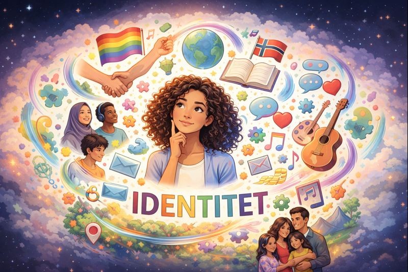 Identiteten vår – altså kven vi er – består av mange delar. Han er ikkje enkel. Vi blir påverka av menneska rundt oss og dei gruppene vi føler vi høyrer til. Du kan for eksempel vere norsk, jente, kvit, heteroseksuell, frå Ålesund, musikar, miljøaktivist og vegetarianar. Alt dette formar kven du er.