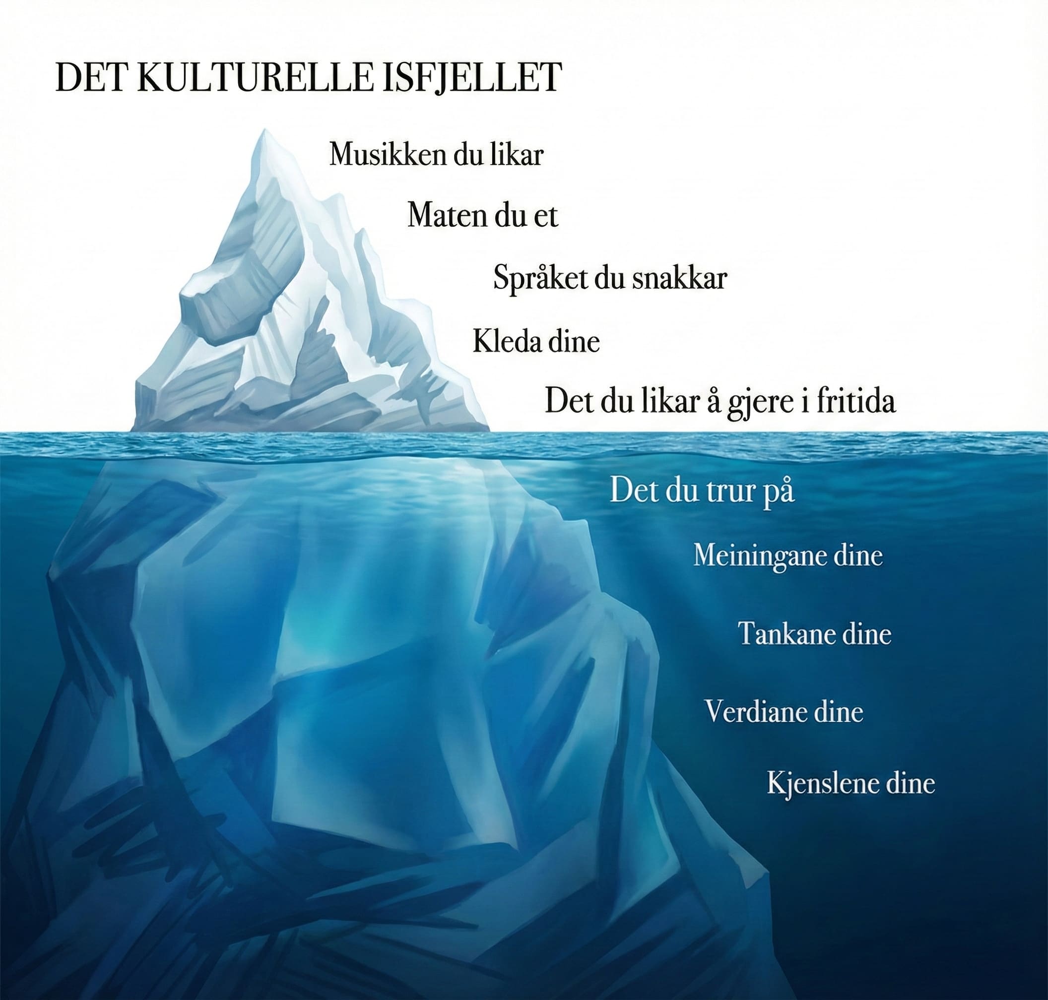 Kultur er alt vi lærer gjennom livet, og som påverkar korleis vi tenkjer, oppfører oss og forstår verda rundt oss. Det er ikkje noko vi blir fødde med. Kultur er noko vi plukkar opp frå menneska vi lever saman med, som familie, vener, skule og samfunnet elles. Etter kvart blir dette ein del av kvardagen vår, utan at vi alltid tenkjer over det.