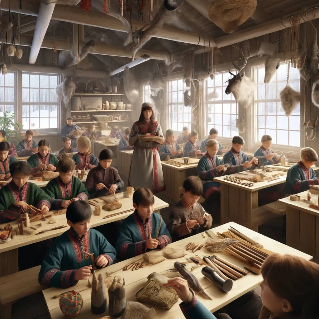 Kleda og reiskapen dei laga, kom direkte frå dei same naturressursane. Skinn, horn, bein og ull frå dyr vart brukt, og bork, never og røter frå tre vart også utnytta. Dette samiske handverket, eller duodji som det blir kalla, er ein stolt tradisjon som speglar samisk kultur og historie.