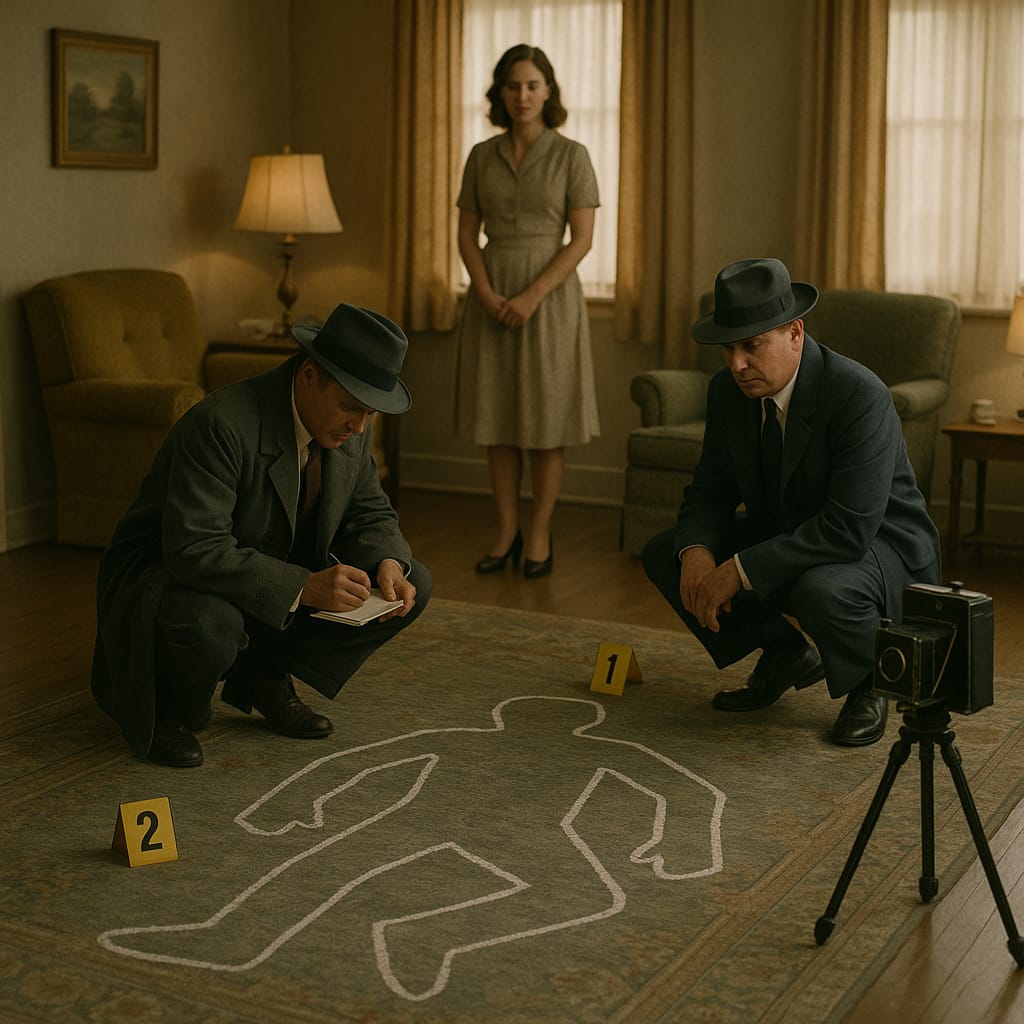 Politiet kjem raskt til staden, og sidan Patrick sjølv var ein av deira kollegaer, tek dei saka alvorleg. Dei undersøker huset, men finn ingen mordvåpen. Mary verkar truverdig når ho forklarer at ho var ute på butikken då drapet må ha skjedd. Etter kvart foreslår ho at politimennene skal ete lammesteika, sidan dei har jobba lenge og må vere svoltne. Dei takkar ja og set seg på kjøkkenet.
